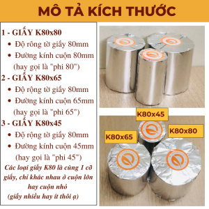 [Thùng 100 cuộn] Giấy in nhiệt K80x45mm – giấy in hóa đơn K80 phi 45mm